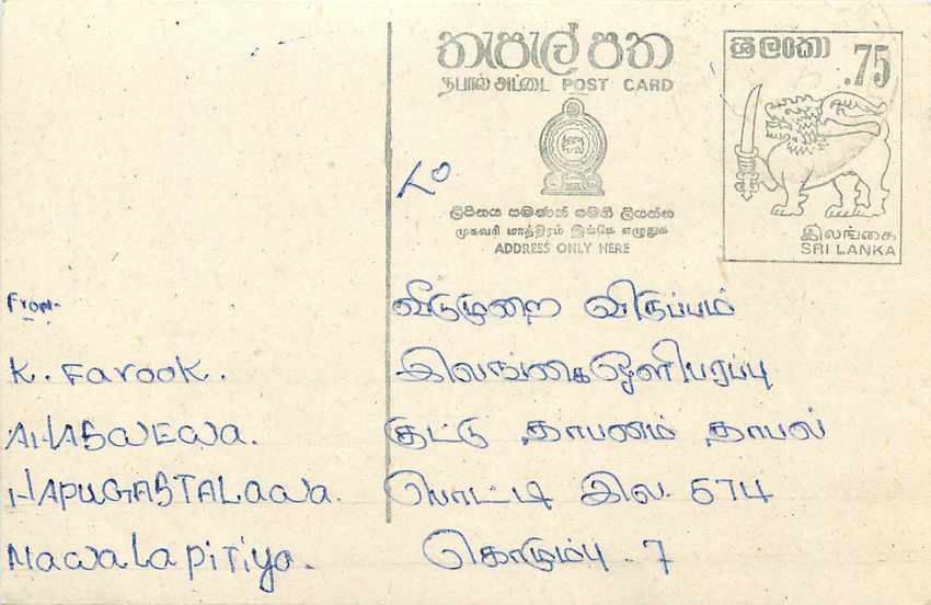 Entier Postal Stationery Postal Sri Lanka Ceylon Lion
