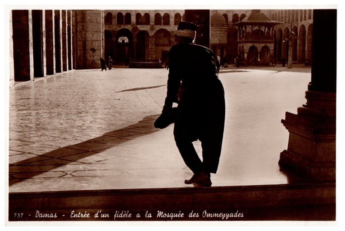 Entrance To The Ommeyyad Mosque Damas Syria Black And White Postcard