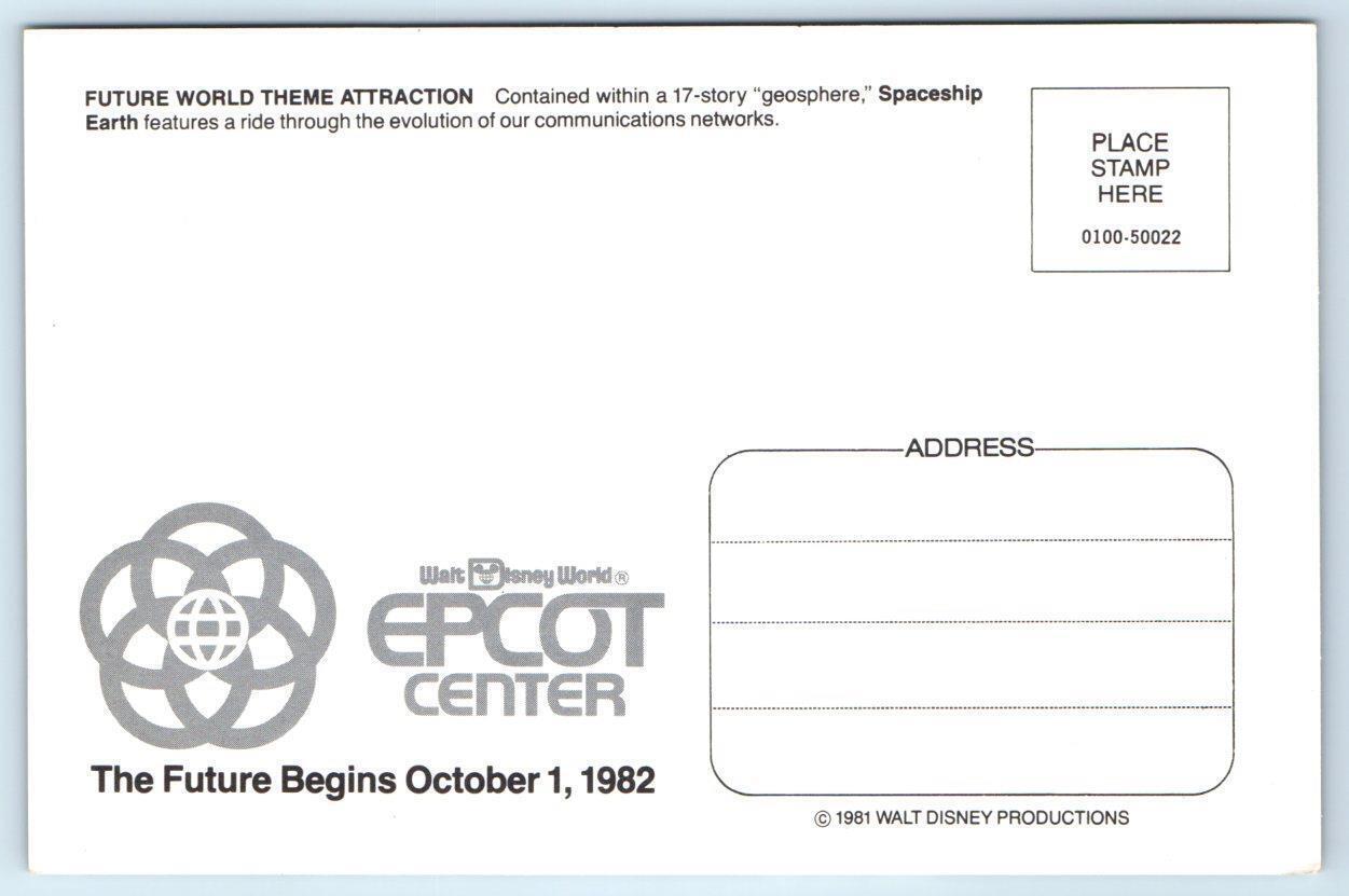 EPCOT CENTER, FL~ Pre Opening FUTURE WORLD Spaceship Earth 1981 ~ 4"x6" Postcard