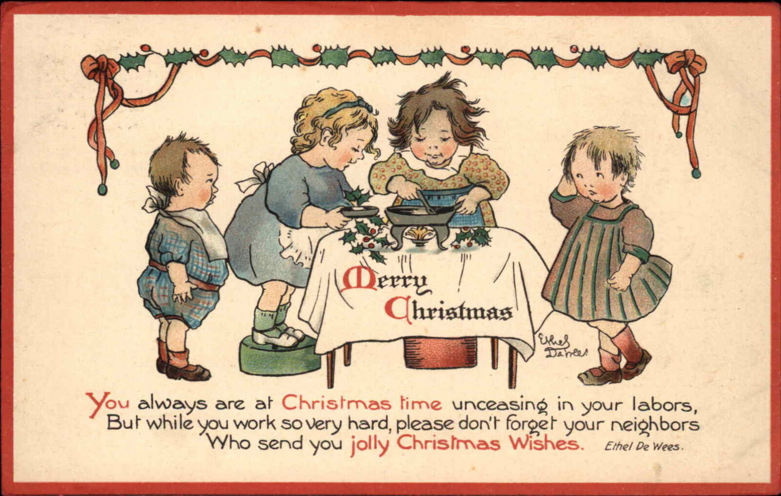 ERNEST NISTER CHRISTMAS Children Prepare Christmas Dinner c1910 Postcard