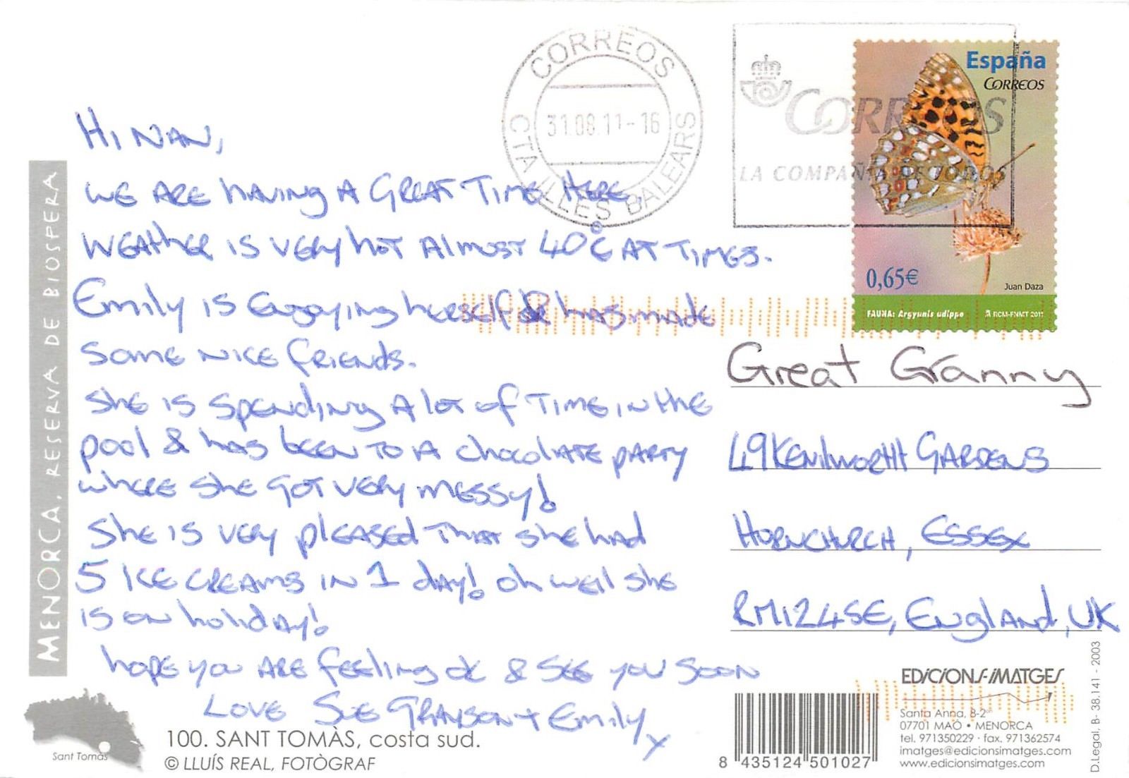 Espana Spain Sant Tomas Menorca butterfly stamp