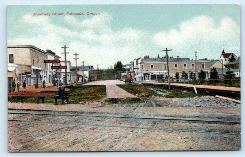 ESTACADA, Oregon OR ~ BROADWAY STREET Scene 1908 Clackamas County Postcard