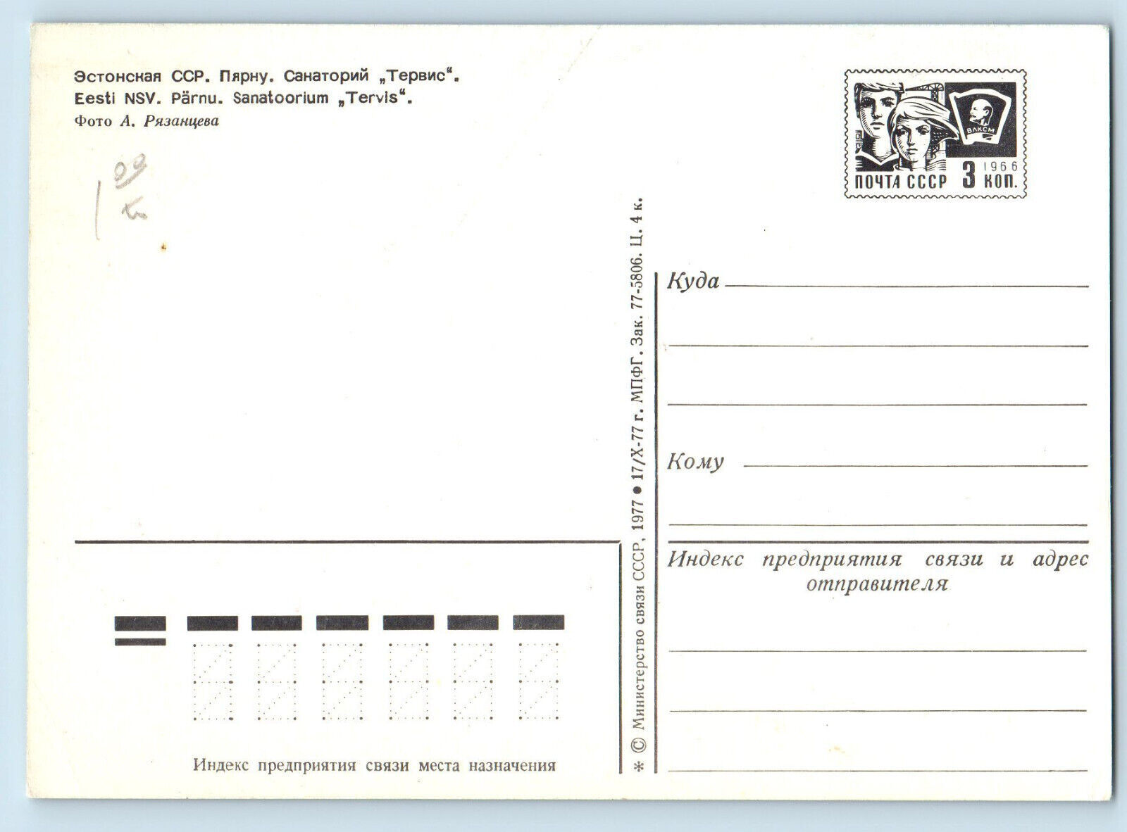 Estonia Postcard SSR. Pärnu. Sanatorium "Tervis" c1950's Vintage Unposted