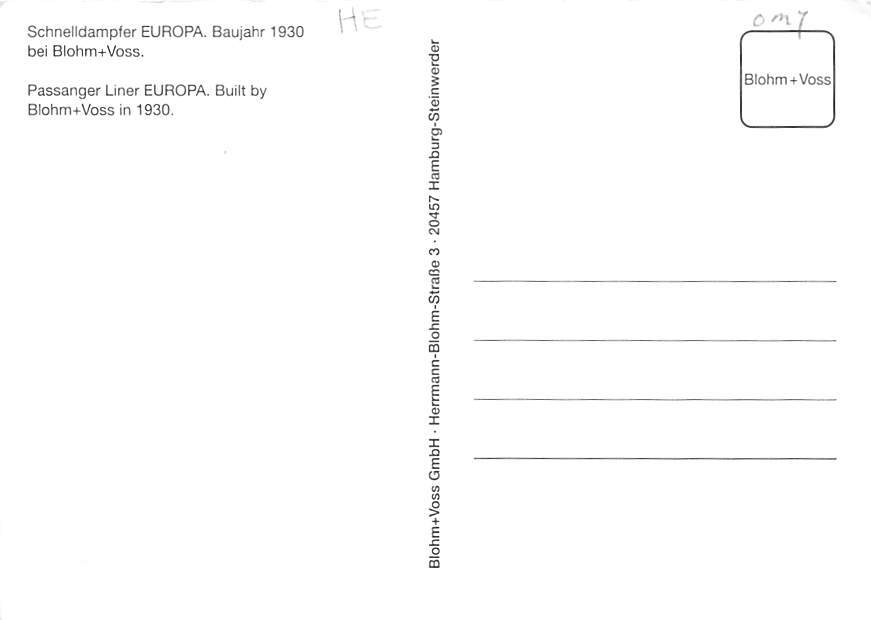 Europa Ship Postcard Postal Date: {{Product Field 4 ( Postal Used, Unused)}} Grade: 1 Size: Continental Size - approximately 4 inch x 6 inch or 10 CM x 15 CM Grading Scale: Grade 1 = Perfect corners Grade 2 ... Read More