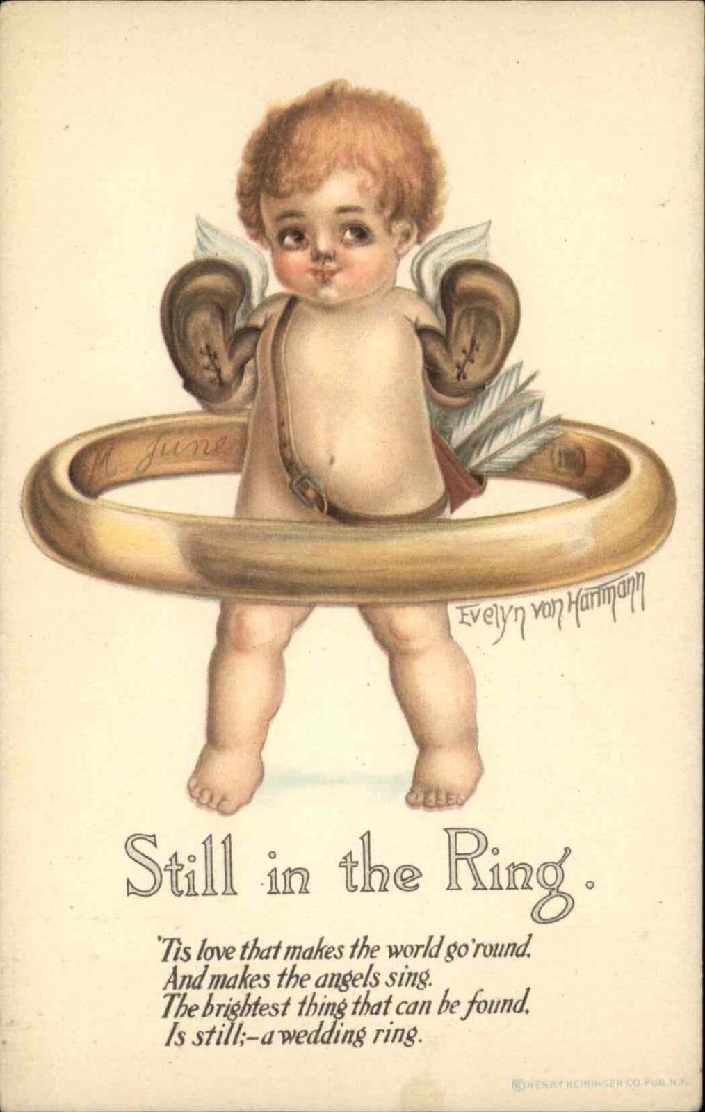 Evelyn von Hartmann Cupid in Wedding Ring Marriage Proposal c1910 Postcard