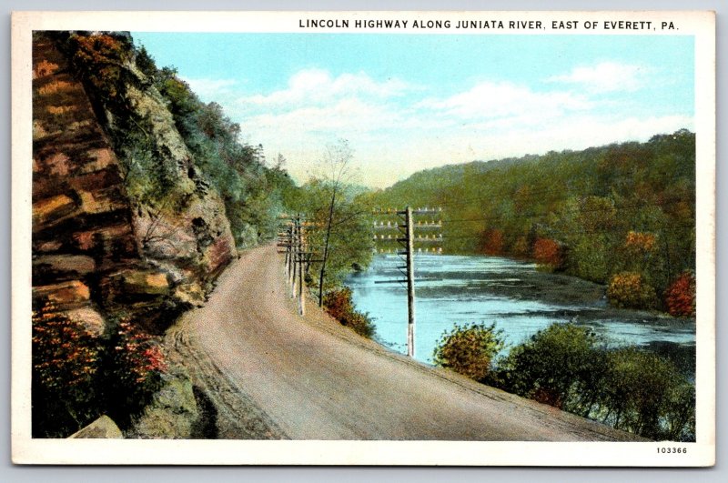 Everett Pennsylvania~Lincoln Highway @ Juniata River~Vintage Postcard