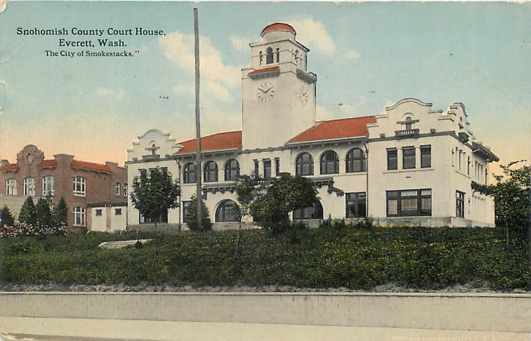 Everett, wa washington snohomish county courthouse 1916 postcard
