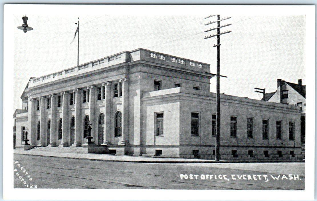 EVERETT, Washington WA POST OFFICE Black and White Printed Postcard