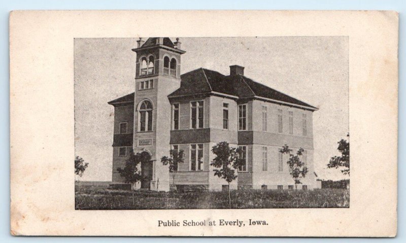 EVERLY, IA Iowa ~ PUBLIC SCHOOL c1910s Clay County Blank Back Postcard