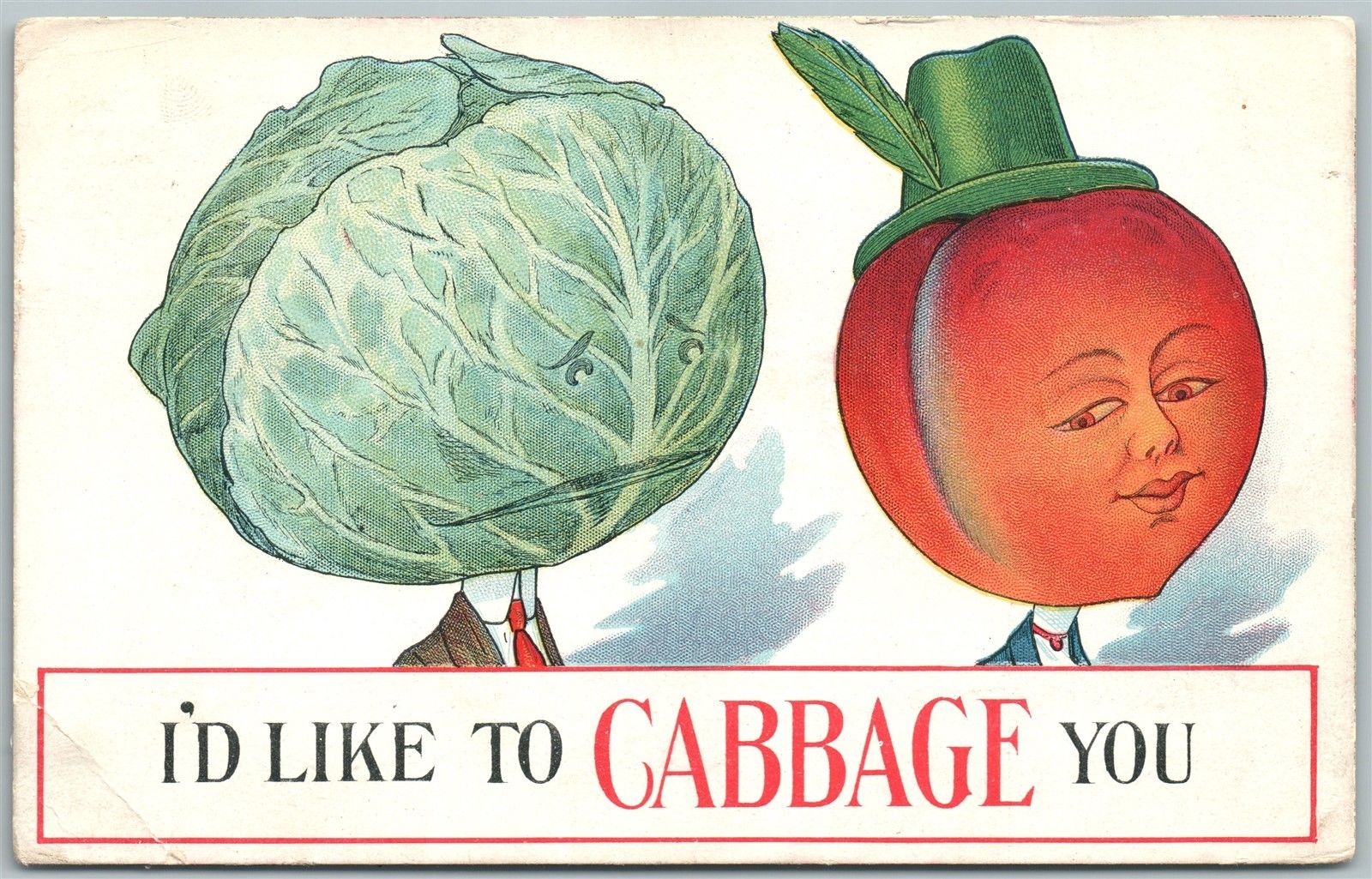 EXAGGERATED 1913 ANTIQUE POSTCARD CABBAGE farming