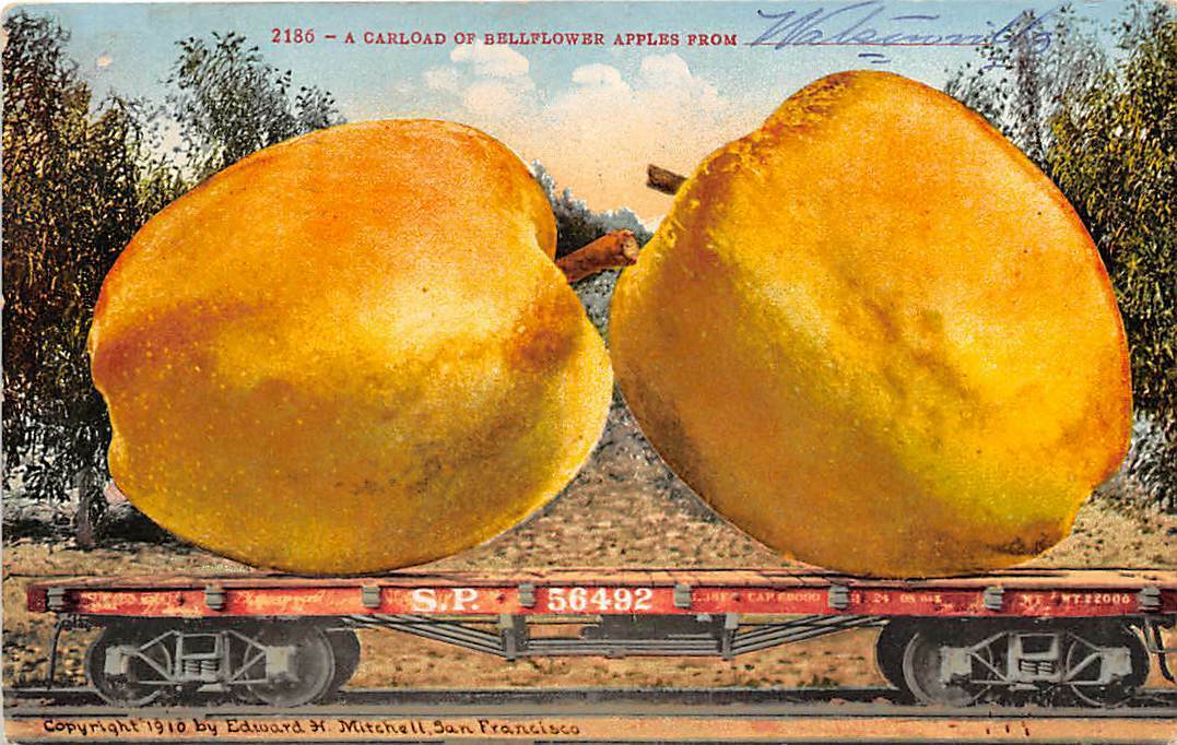 Exaggerated Bellflower Apples SP Railroad Car Exaggeration 1910 postcard