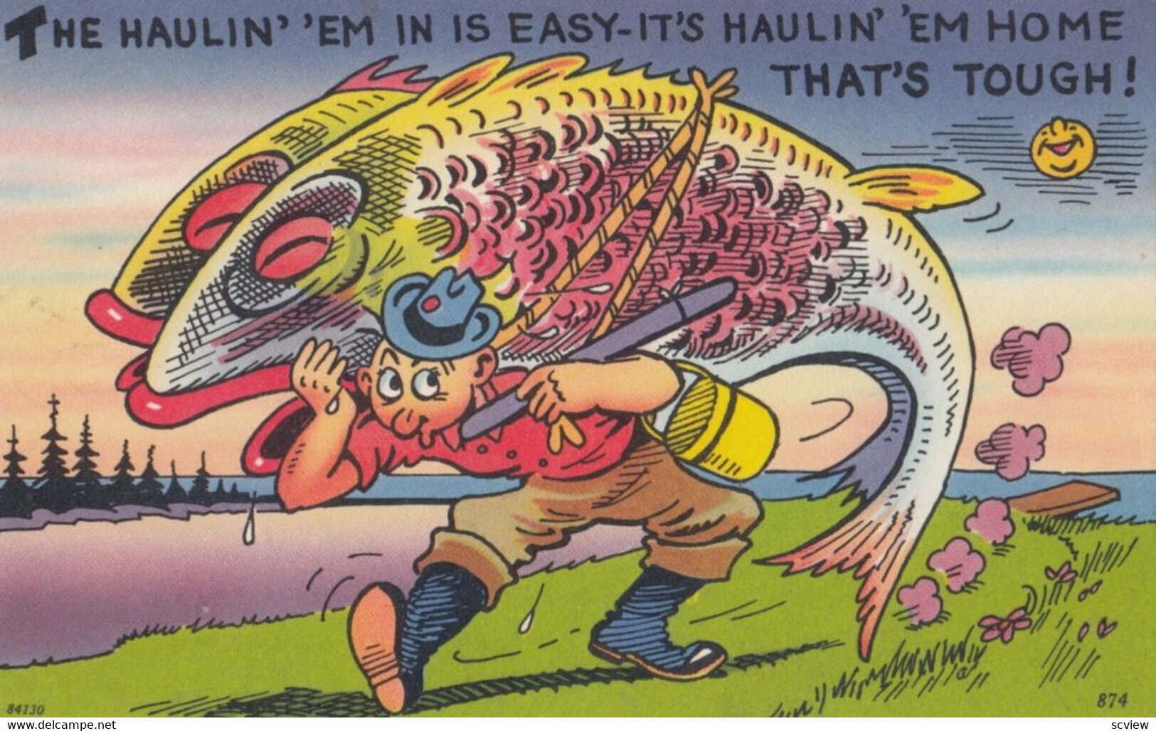 Exaggeration Fishing Comic Postcard , 30-40s : #15