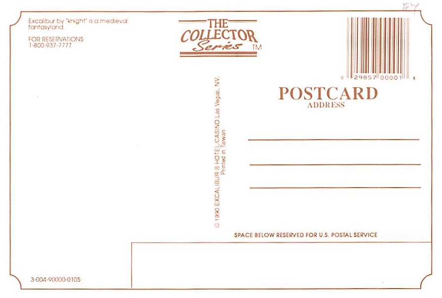 Excalibur - Las Vegas, Nevada, USA Grade: 1 Category: Continental Size Postcard, Approx 4 in x 6 in (10 cm x 15.25 cm) Product Size: Continental size: 4X6 inches (10.5 cm x 15 cm) Grading Scale: Grade 1 = Perf ... Read More