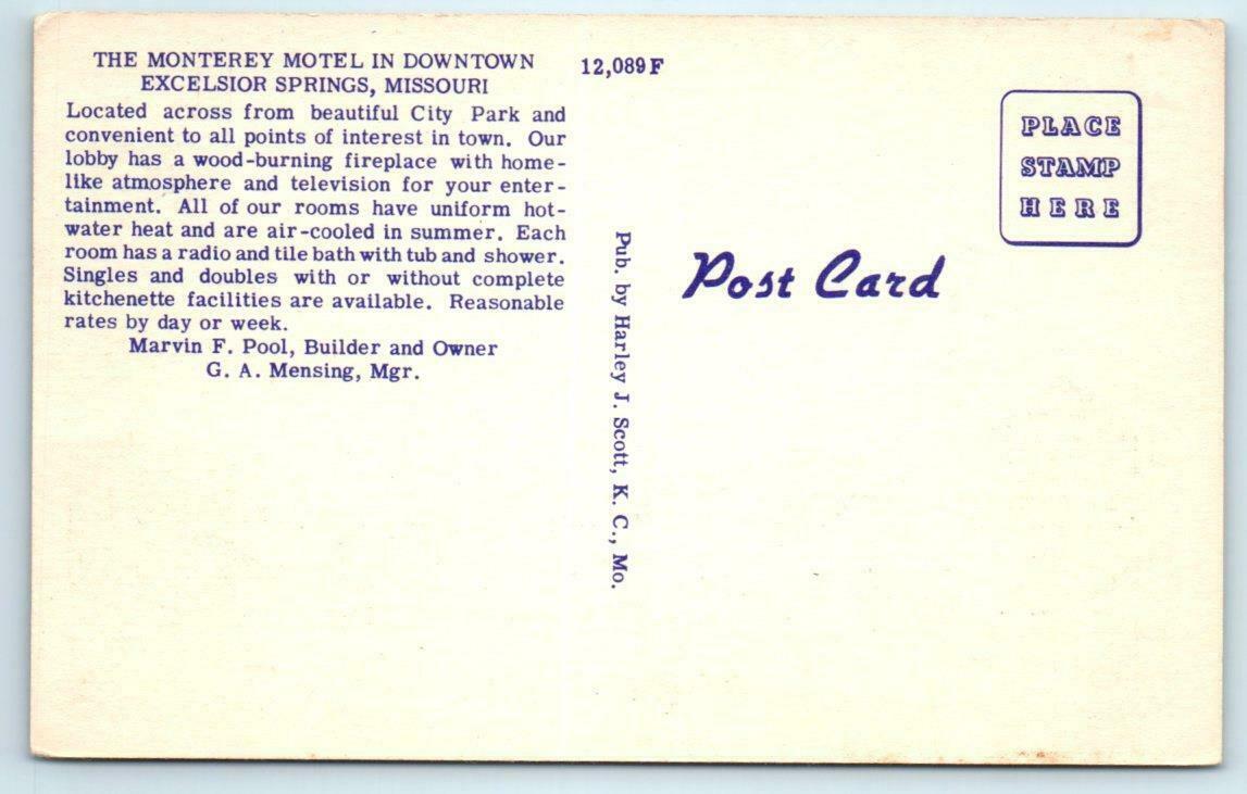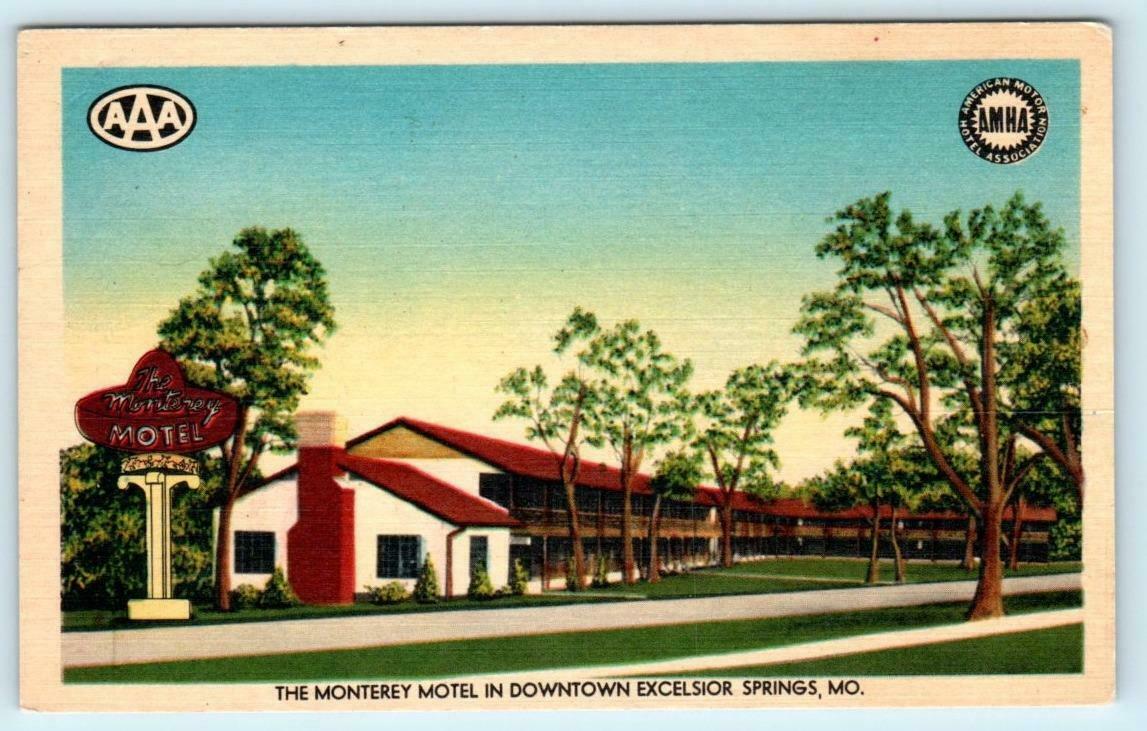 EXCELSIOR SPRINGS, Missouri MO ~ Roadside MONTEREY MOTEL c1940s Linen Postcard