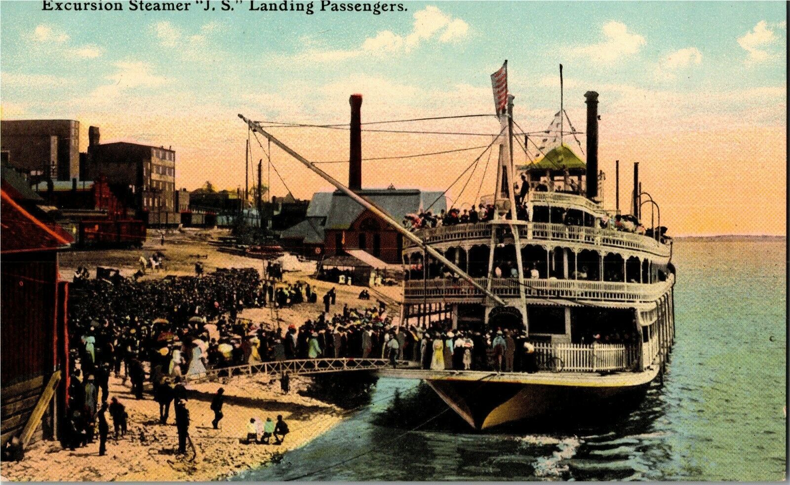 Excursion Ship J.S. Landing Passengers Mississippi River Vintage Postcard D70