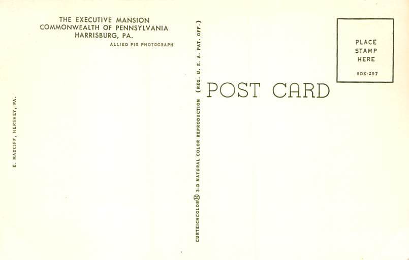 Executive Mansion Harrisburg, Pennsylvania PA Postcard - Unused
