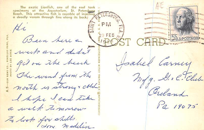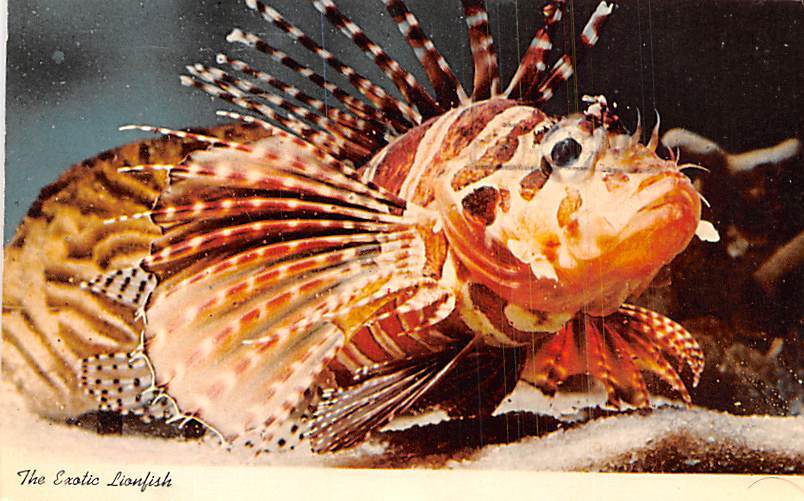 Exotic Lionfish Postcard 1968, Grade: 2, , Size: Regular Size Postcard - approximately 3 1/2 inch x 5 1/2 inch (9 CM x 14 CM) Grading Scale: Grade 1 = Perfect corners Grade 2 = Very Minimal corner wear, no crea ... Read More