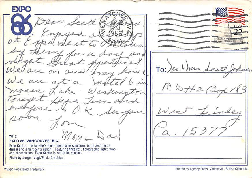 Expo 86, Vancouver, B.C. Postcard