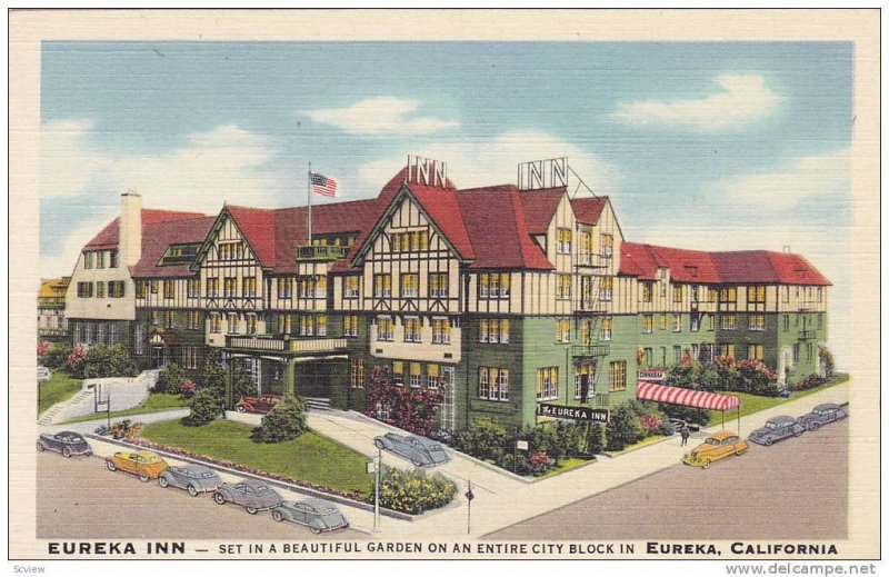 Exterior, The Eureka Inn, Eureka, California, 30-40s :: Postcard,standard size, 3.5 by 5.5, Linens, EX