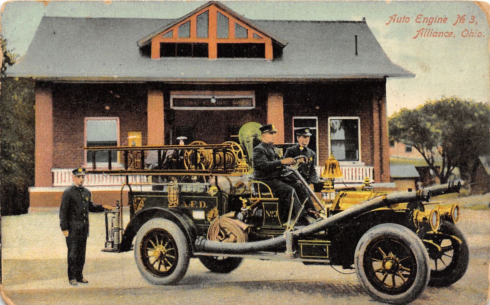 F10/ Alliance Ohio Postcard Fire Department 1911 Auto Engine No3