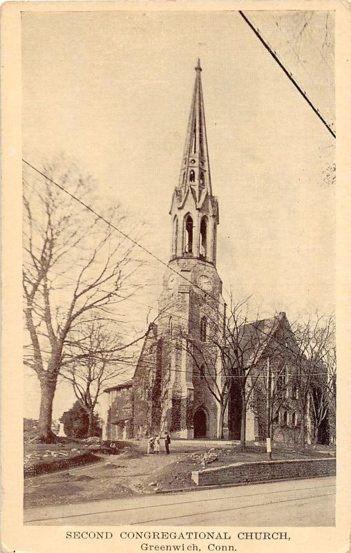 F11/ Greenwich Connecticut Postcard c1910 Second Congregational Church Building