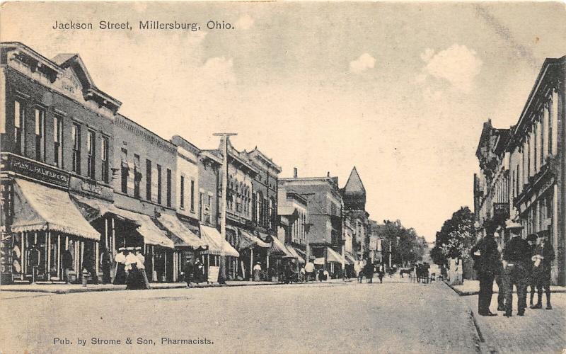 F12/ Millersburg Ohio Postcard c1910 Holmes County Jackson St Stores