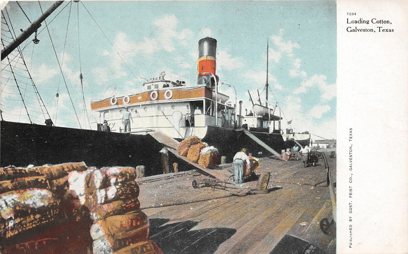 F14/ Galveston Texas Postcard c1910 Loading Cotton Workers Ship 15