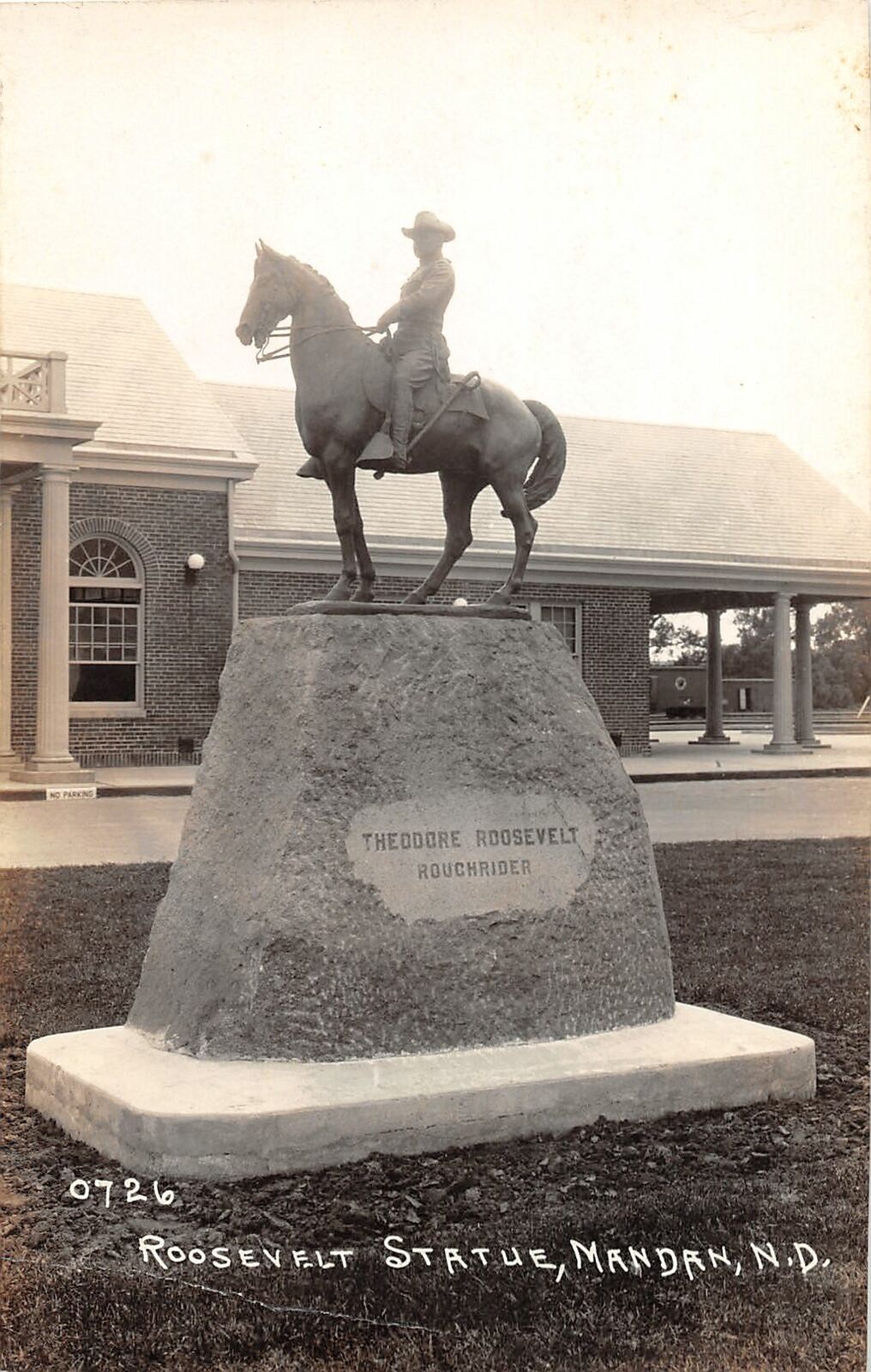 F14/ Mandan North Dakota RPPC Postcard c1930s Roosevelt Statue 4