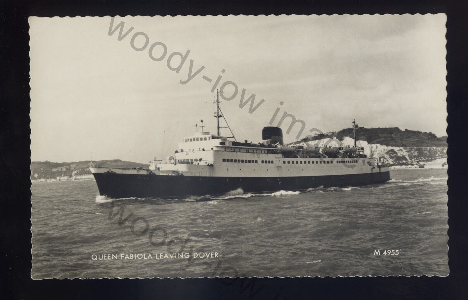 f2180 - Belgian Ferry - Queen Fabiola leaving Dover - postcard
