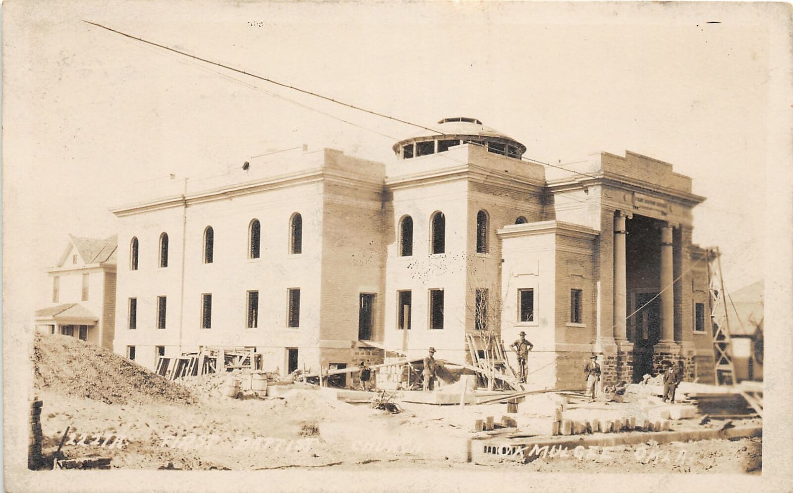 F22/ Okmulgee Oklahoma RPPC Postcard c1910 First Baptist Church Construct