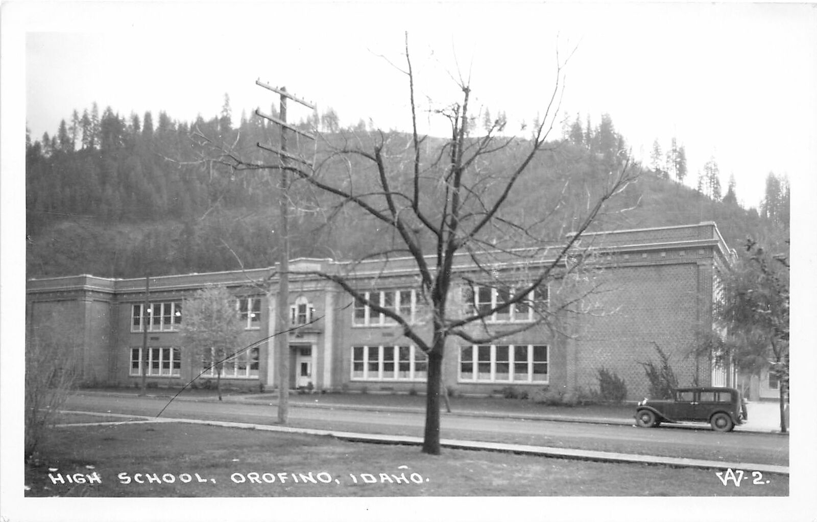 F38/ Orofino Idaho RPPC Postcard c1940s High School Building
