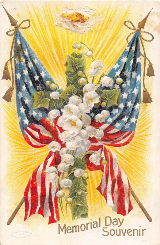 F44/ Patriotic Postcard Memorial Day c1910 Flag Flowers 16