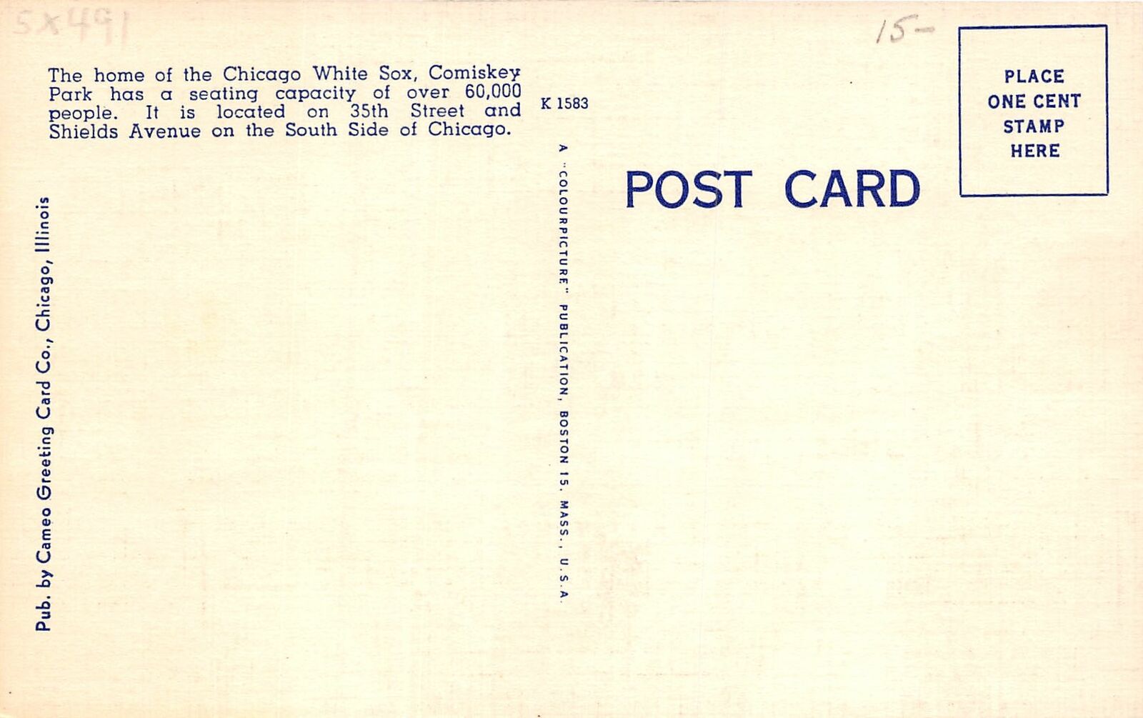 F56/ Chicago Illinois Postcard Linen Comiskey Park Baseball Stadium Night 1