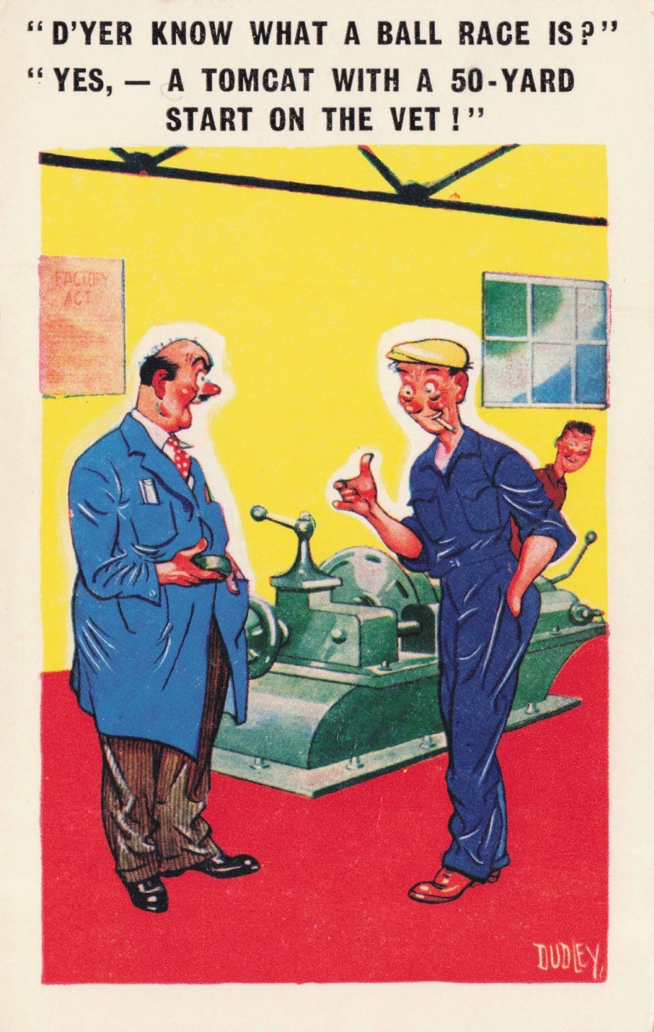 Factory Foreman Ball Race Old Machine Tomcat Vintage Comic Postcard