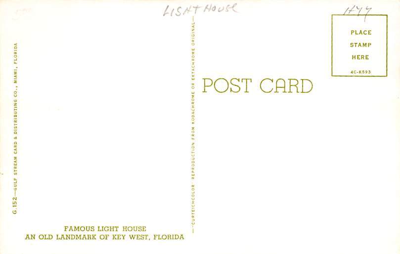 Famous Light House Old Landmark Key West FL Postcard - Unused