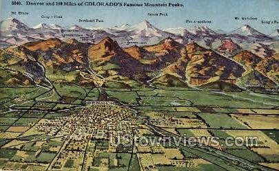 Famous Mountain Peaks - Denver, Colorado CO Postcard - Unused Grade: 1 Size: R - Regular size: Approx 3 1/2 X 5 1/2 inch (9 cm X 14 cm) Grading Scale: Grade 1 = Perfect corners Grade 2 = Very Minimal corner we ... Read More