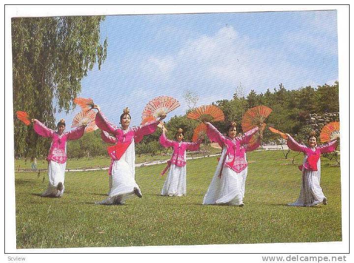 Fan Dance #4 , Korea , 50-70s :: Postcard , 4by6" , Chrome , EX