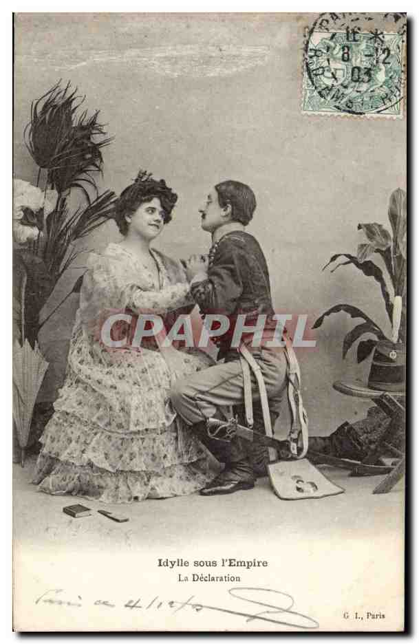 Fantasy - Couple - Militaria - Uniform - Old Postcard
