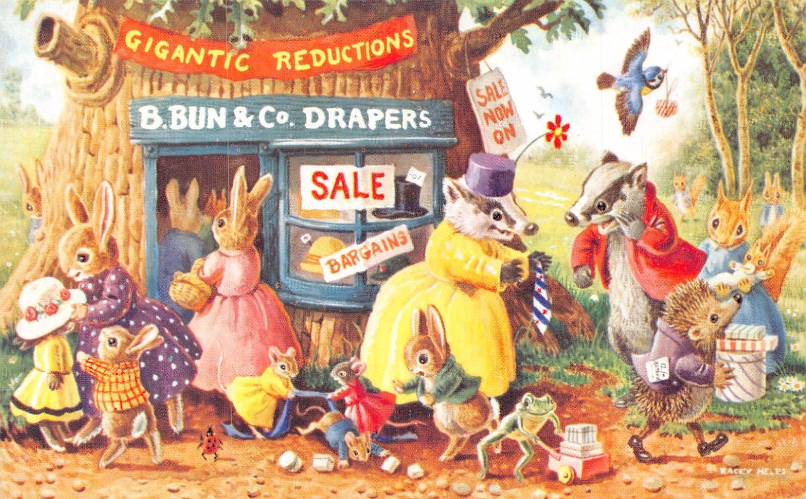 Fantasy Humanized Opossum Rabbits Frog Mouse Hedgehog Bun&Co Shop postcard B927