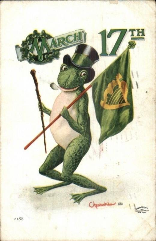 Fantasy - St. Patrick's Day Frog w/ Flag - Bernhardt Wall c1910 Postcard