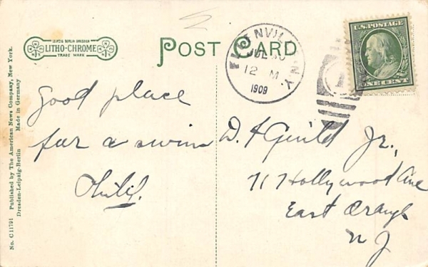 Fantinekill Falls Ellenville, New York Postcard - 1909 Grade: 2 Size: R - Regular size: Approx 3 1/2 X 5 1/2 inch (9 cm X 14 cm) Grading Scale: Grade 1 = Perfect corners Grade 2 = Very Minimal corner wear, no ... Read More