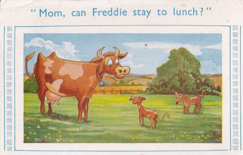 Farm Cow Calf Field Cattle Udder Feeding Cows Comic Postcard