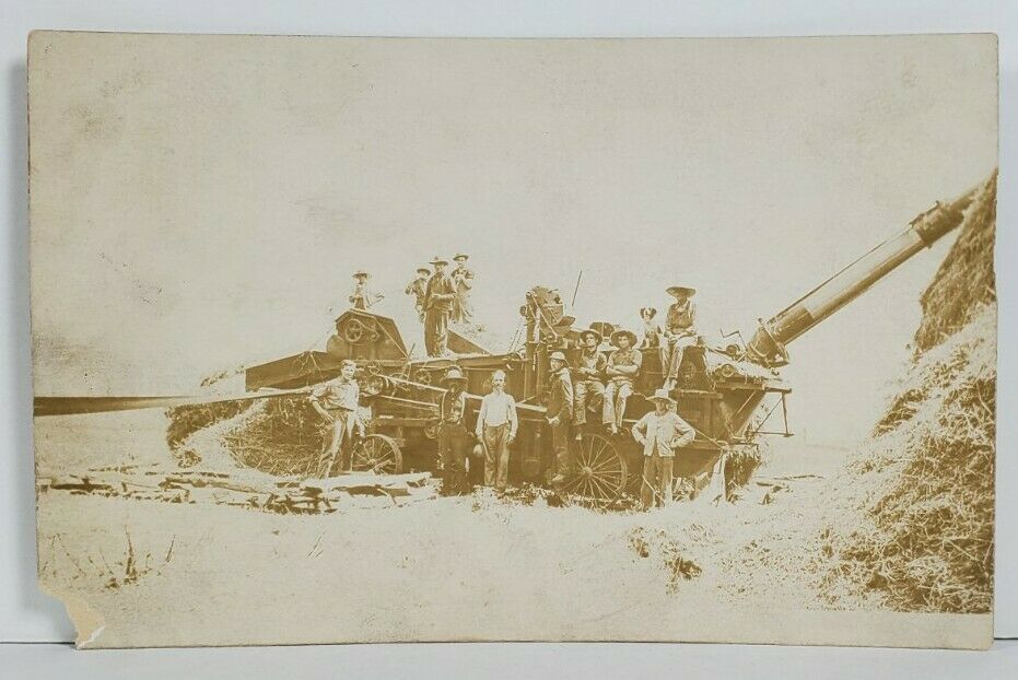 FARMING Agricultural Farmers LARGE THRESHING MACHINE 1900s Postcard P11