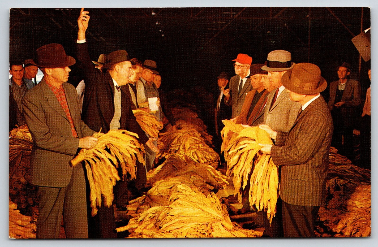 Farming~Farmers Sorting @ Tobacco Auction Scene~1950s Postcard
