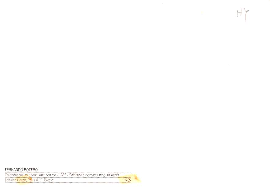 Fernando Botero - Nude Grade: 1 Category: Continental Size Postcard, Approx 4 in x 6 in (10 cm x 15.25 cm) Product Size: Continental size: 4X6 inches (10.5 cm x 15 cm) Grading Scale: Grade 1 = Perfect corners G ... Read More