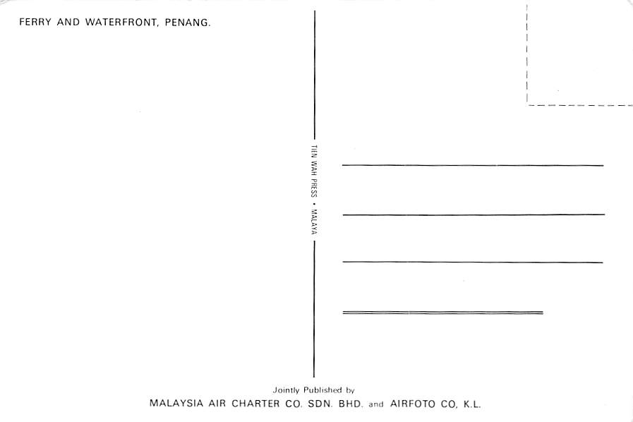 Ferry & Waterfront - Penang Continental Size Postcard, Approx 4 in x 6 in (10 cm x 15.25 cm) Continental Size: 4X6 inches (10.5 cm x 15 cm)