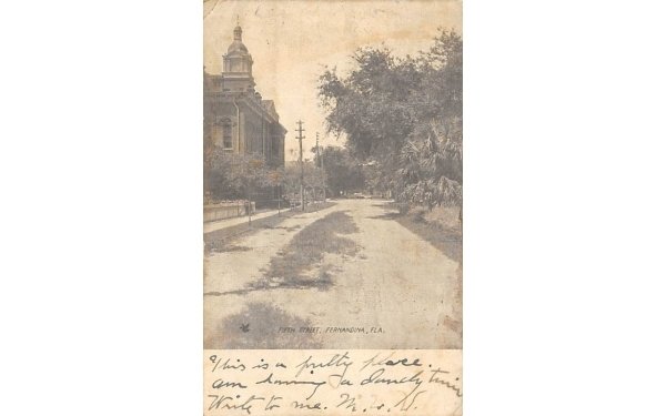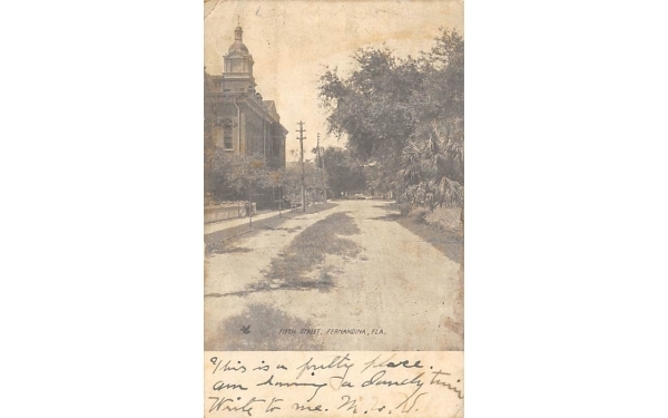 Fifth Street Fernandina , Florida Postcard - 1907 Grade: 3 Size: R - Regular size: Approx 3 1/2 X 5 1/2 inch (9 cm X 14 cm) Grading Scale: Grade 1 = Perfect corners Grade 2 = Very Minimal corner wear, no creas ... Read More