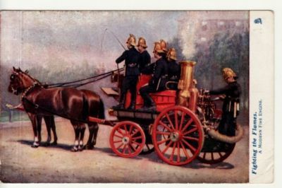 FIGHTING the FLAMES / HORSE DRAWN FIRE ENGINE postcard