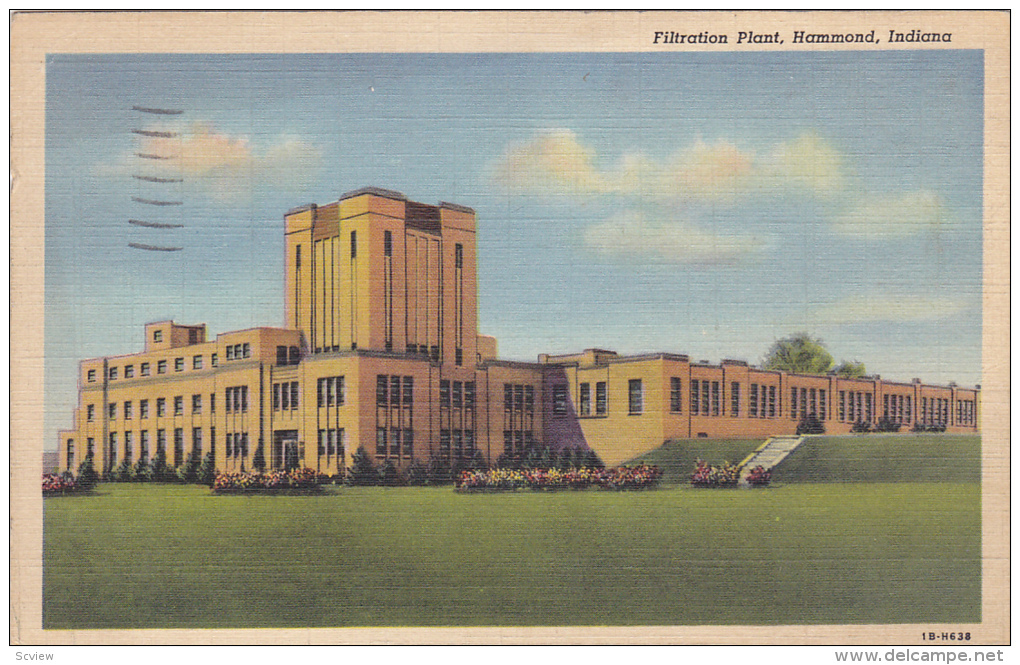 Filtration Plant, Hammond, Indiana, PU-1944 :: Postcard, 3.5" by 5.5", Linen, VG+, WOB, COF