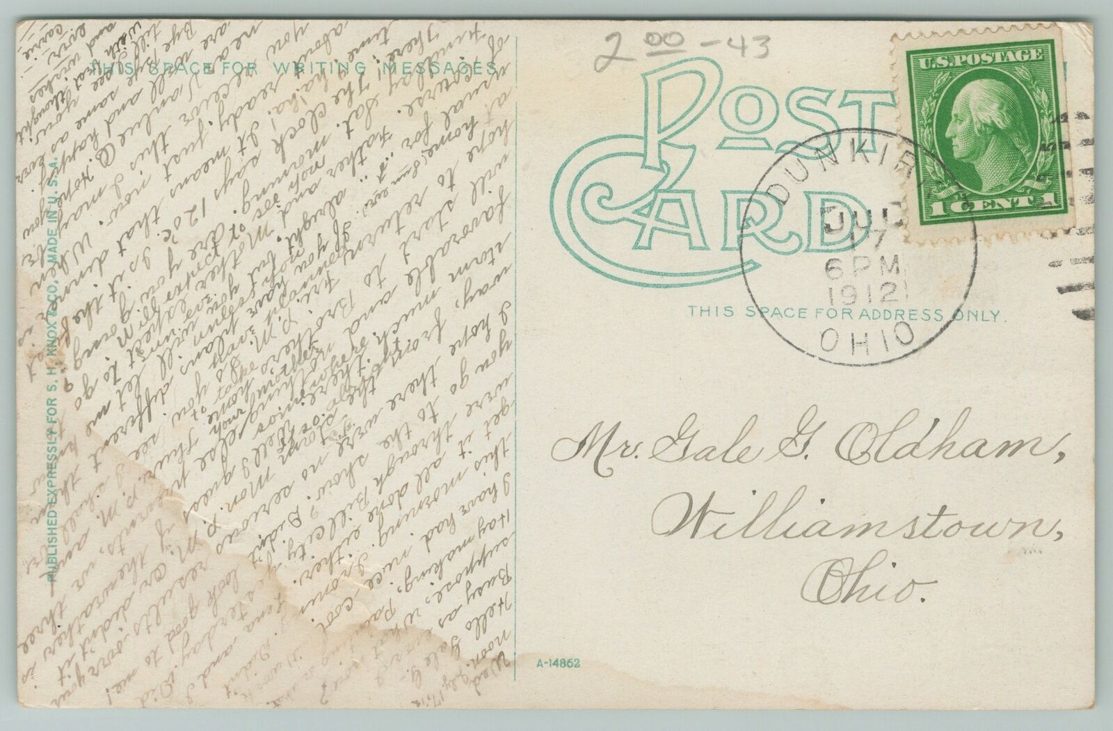 Using the photo magnifier, please examine photos carefully, both front and back, for flaws. The back will sometimes reveal nicks or bends that you cannot see from the front. Double-click the image for super size photo. Colored lines are from the scanner and are not on the postcard